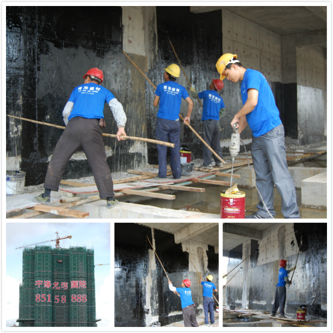 龍灣國(guó)際項(xiàng)目防水面積達(dá)5萬(wàn)㎡,施工部位為地下室剪力墻與頂板,采用了青龍911聚氨酯防水涂料(CQ107)與聚乙烯丙綸,由于連續(xù)降雨,地下室長(zhǎng)期處于浸水狀態(tài),給施工帶來(lái)了一定難度,但青龍人認(rèn)真對(duì)待每一施工細(xì)節(jié),保證工期內(nèi)圓滿完成,目前地下室防水已經(jīng)接近尾聲,獲得了甲方的一致認(rèn)可。