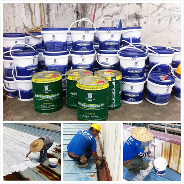 青龍公司中山經(jīng)銷商張總成功承接了這一防水補漏工程。經(jīng)過實地仔細檢查,并經(jīng)與客戶詳細協(xié)商,最后敲定采用青龍公司CQ103丙烯酸酯高級彈性防水涂料和CQ104單組份濕固化純聚氨酯防水涂料的組合補漏方案。青龍CQ103丙烯酸酯防水涂料具有良好的耐老化、延伸性、粘結性、成膜性及耐高溫性,因此非常適合在鐵皮房屋頂作整體涂刷;而屋頂排水溝則采用CQ104單組份濕固化純聚氨酯防水涂料。