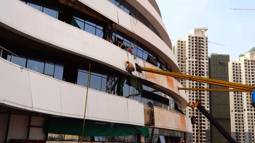 青龍公司作為國(guó)內(nèi)GRC領(lǐng)域的知名企業(yè),承接了新媒體中心三座主體結(jié)構(gòu)的雙曲面外墻板項(xiàng)目。由于所有的面板沒有一片完全相同,不僅要經(jīng)受高空風(fēng)雨的侵蝕,相鄰兩塊更要緊密榫合,天衣無(wú)縫,并在整體上形成流線性美感,因此需要制作大量的模具,工程極為繁瑣。但青龍GRC團(tuán)隊(duì)克服重重困難,從圖紙深化設(shè)計(jì)、彩色GRC選材、造型產(chǎn)品生產(chǎn)到安裝施工等一系列工序中都做到極致,讓甲方和監(jiān)理都非常滿意。