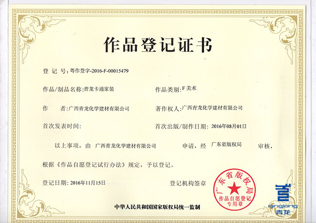 近日,青龍卡通家裝和工裝(粵作登字-2016-F-00015479和粵作登字-2016-F-00015480)順利通過(guò)廣東省版權(quán)局審核,予以登記。自2016年11月15日起,青龍卡通家裝/工裝設(shè)計(jì),將受法律保護(hù),版權(quán)所有,侵權(quán)必究。