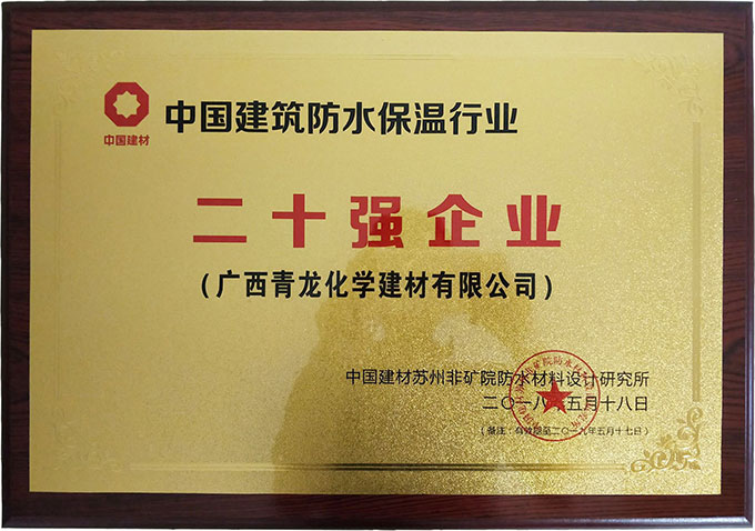 青龍榮獲"中國建筑防水保溫二十強(qiáng)企業(yè)"稱號