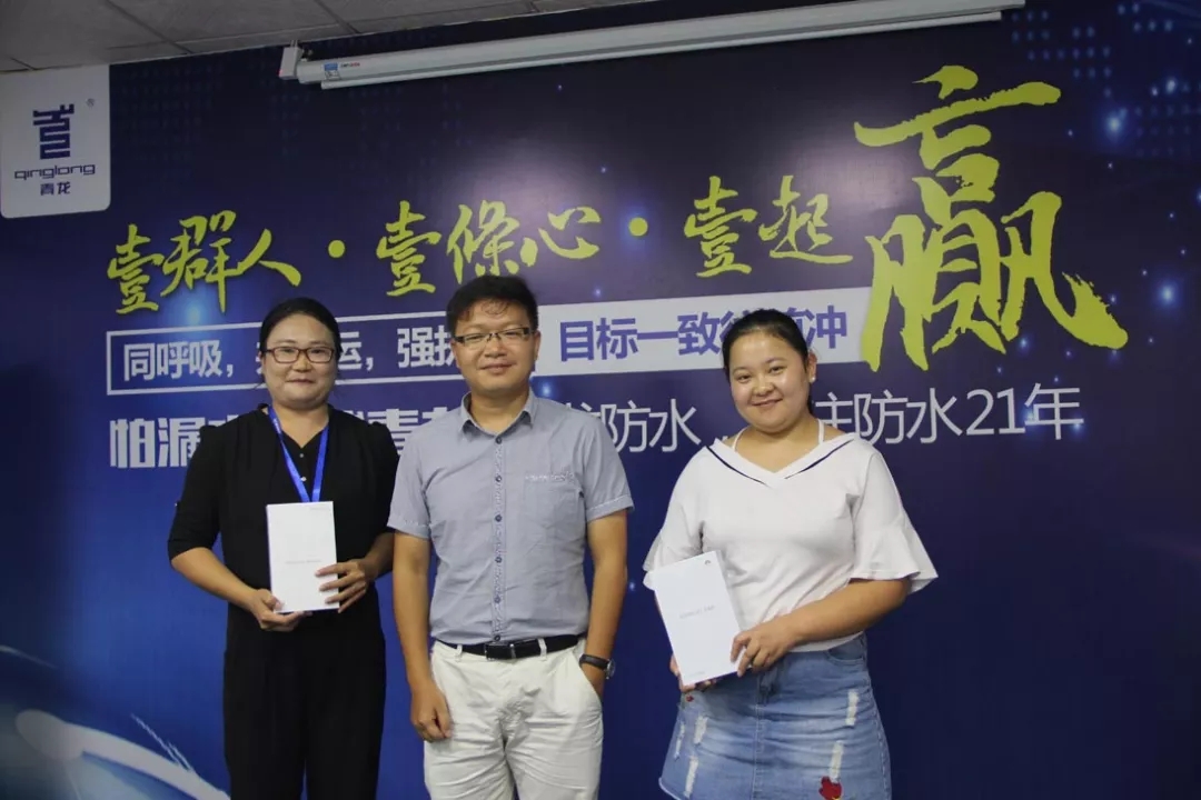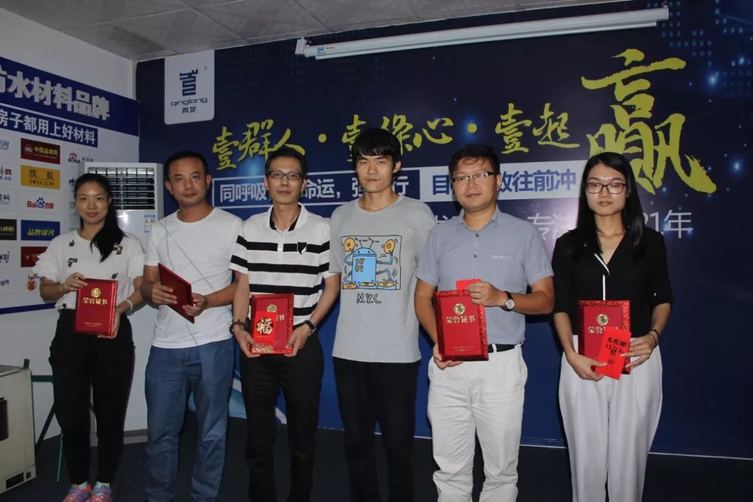青龍公司董事長宋敦清、營銷總監(jiān)賀金龍、家裝防水事業(yè)部總經(jīng)理于超軍、質(zhì)量總監(jiān)張科、行政經(jīng)理廉金利以及家裝事業(yè)部全體同仁,工裝防水營銷中心、電商部部分人員共四十余人參加了表彰。