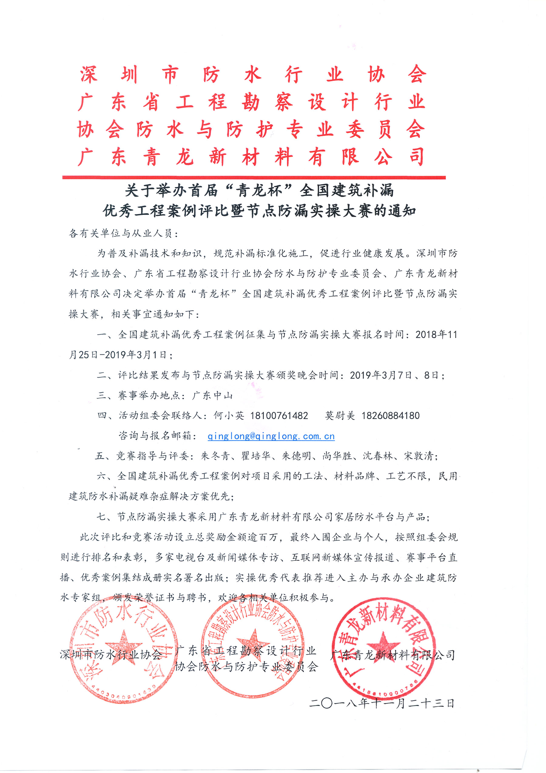 五、所有參賽者還可免費(fèi)參加第二屆建筑修繕補(bǔ)漏高峰論壇暨青龍防水促銷狂歡節(jié)。