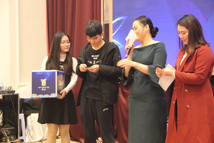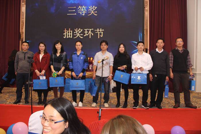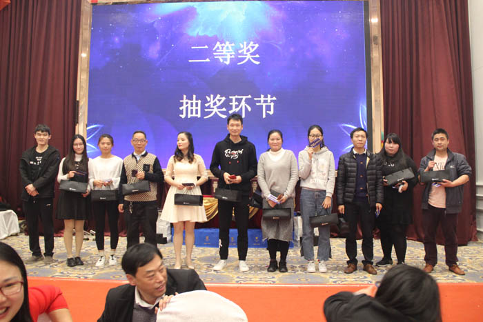 除了精彩的文藝節(jié)目,更讓人充滿期待的當(dāng)然是晚會標(biāo)配的抽獎啦!今年公司為大家準(zhǔn)備了微信搖一搖、精美實物獎勵、微信紅包和現(xiàn)金紅包等等多項多種大獎,主持人每一次的報獎都讓大家小心臟撲通撲通的跳,充滿希望,中獎?wù)呦膊蛔詣?!一輪又一輪大獎也將年會推向高潮,大家都非常的興奮,歡快!