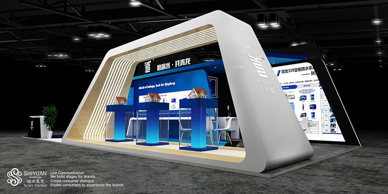 青龍防水展館整體呈現(xiàn)出極簡流線型的,如公司防水涂料流水般的圓滑流暢風格。它在原有青龍藍的基調基礎上加入咖啡色作為誘導,讓整個空間色彩飽滿豐富,既有時尚大氣的熱情奔放,也有極簡輕奢的科技風范。