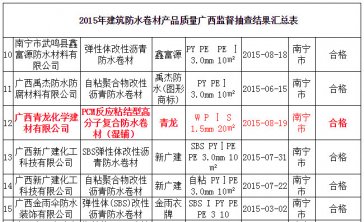 廣西質(zhì)監(jiān)局公布2015年建筑防水卷材抽檢公告,青龍防水卷材合格達標