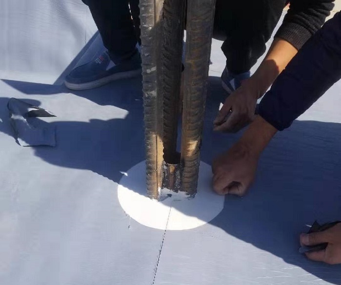將卷材長(zhǎng)短邊搭接處隔離膜揭除干凈,后安排鋼筋操作工進(jìn)場(chǎng)完場(chǎng)鋼筋捆扎。