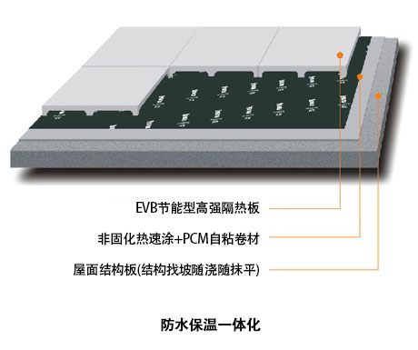 為有效改善屋面防水保溫綜合性能,使屋面防水保溫做到一勞永逸,條件允許可采用防水保溫一體化系統(tǒng)=結(jié)構(gòu)找坡+拋丸+非固化熱速涂+PCM自粘卷材+隔熱板,徹底根除滲漏,確保隔熱保溫的效能。這一系統(tǒng)也將成為未來(lái)屋面防水保溫的新理念。