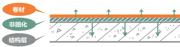 非固化與卷材的復(fù)合做法,主要是將基層進(jìn)行處理,除去水泥浮皮,露出里面的基層;其次,在基層表面進(jìn)行非固化防水涂料的噴涂或者涂膜施工,厚度按照設(shè)計要求,一般在1.5mm-2mm之間;之后進(jìn)行卷材的鋪粘,并用非固化進(jìn)行搭接處的粘結(jié)。基本上,所有的關(guān)鍵點(diǎn)在于非固化防水涂料的施工,分涂抹和噴涂施工兩種方法,可利用機(jī)器進(jìn)行施工。
