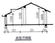 單(多)層建筑物的坡屋頂內(nèi)空間,當(dāng)設(shè)計(jì)加以利用時(shí),其凈高超過(guò)2.1m的部位應(yīng)計(jì)算全面積;凈高在1.2m至2.1m的部位應(yīng)計(jì)算1/2面積;凈高不足1.2m的部位不應(yīng)計(jì)算面積。設(shè)計(jì)不利用時(shí)不應(yīng)計(jì)算面積。這里我將這種算法簡(jiǎn)稱為“凈高界限計(jì)算法”。凈高是指樓面或地面至上部樓板(屋面板)底或吊頂?shù)酌嬷g的垂直距離。如圖2:第(1)部分凈高<1.2m,不計(jì)算面積;第(2)、(4)部分1.2m≤凈高≤2.1m,計(jì)算1/2面積;第(3)部分凈高>2.1m,應(yīng)全部計(jì)算面積。