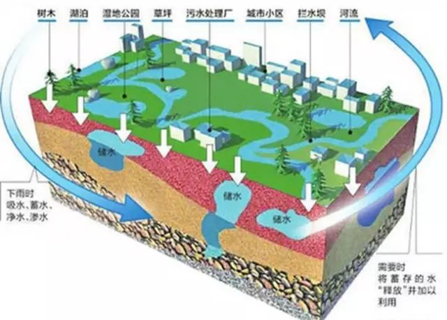 (1)海棉城市,是新一代城市雨洪管理概念,是指城市在適應(yīng)環(huán)境變化和應(yīng)對(duì)雨水帶來(lái)的自然災(zāi)害等方面具有良好的"彈性",也可稱(chēng)之為"水彈性城市",國(guó)際通用術(shù)語(yǔ)為"低影響開(kāi)發(fā)雨水系統(tǒng)構(gòu)建"。下雨時(shí)吸水、蓄水、滲水、凈水,需要的時(shí)候?qū)?chǔ)蓄的雨水"釋放"并加以利用。國(guó)務(wù)院辦公廳出臺(tái)"關(guān)于推進(jìn)海綿城市建設(shè)的指導(dǎo)意見(jiàn)"指出,采用滲、滯、蓄、凈、用、排等措施,將70%的降的就地消納和利用。