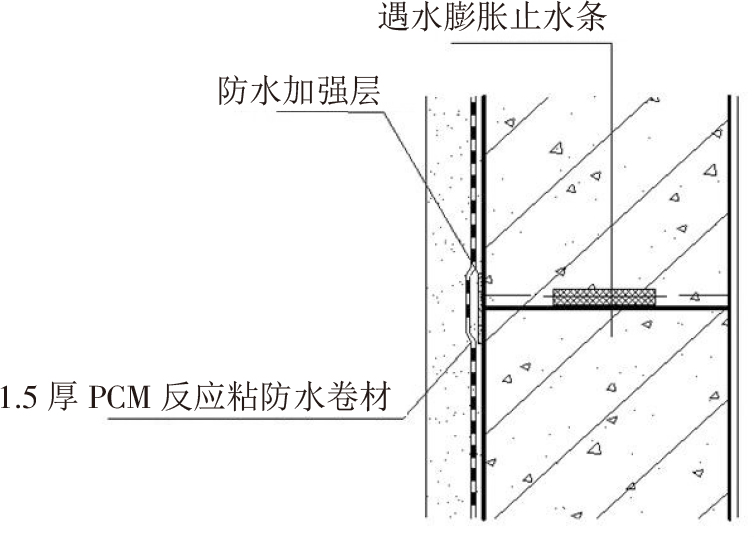本工程項目地下室防水根據(jù)相關(guān)要求設(shè)計為一級防水,鋼筋混凝土抗?jié)B等級為P8,主要部位防水設(shè)計見圖2—5。