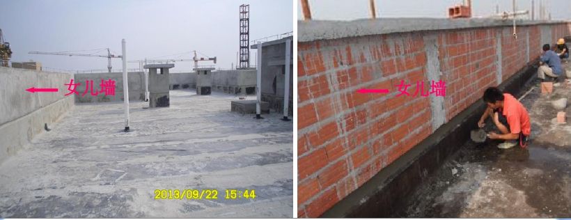 9、女兒墻:指的是建筑物屋頂外圍的矮墻,除了護欄作用外,還起到給平面防水層上翻收口,以避免防水層滲水或是屋頂雨水漫流。依建筑技術(shù)規(guī)則規(guī)定,女兒墻被視作欄桿的作用,如建筑物在10層樓以上高度不得小于1.2m,為避免業(yè)者刻意加高女兒墻,方便以后搭蓋違建,亦規(guī)定高度最高不得超過1.5m。