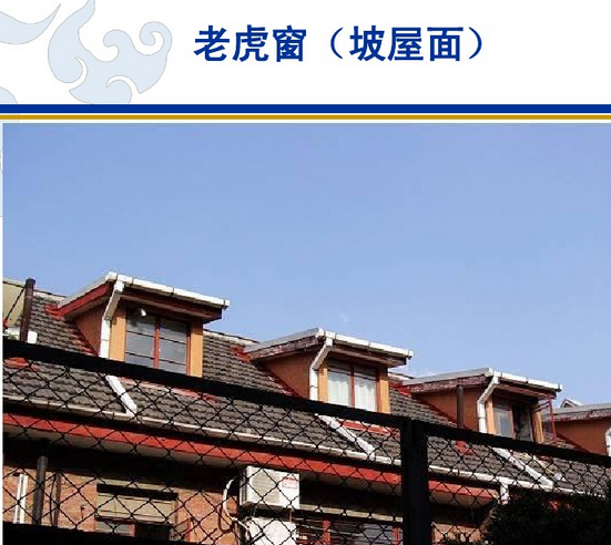 17、老虎窗又稱為老虎天窗,是指一種開在屋頂上的天窗。也就是在斜屋面上凸出的窗,用作房屋頂部的采光和通風。