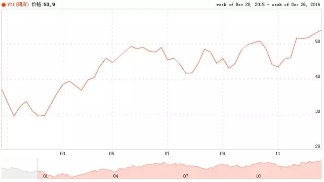 數據顯示,11月上旬開始,WTI從11月初的45.69美元/桶持續(xù)拉升至11月底的51.68美元/桶。