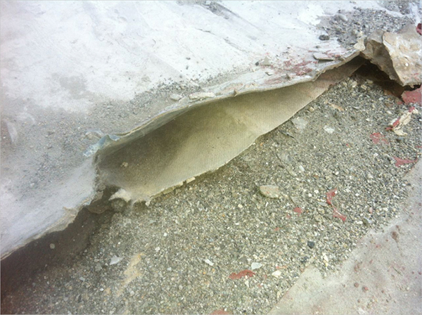 (三)在結(jié)構(gòu)沉降、溫差、震動(dòng)、氣壓差、荷載變化等各種復(fù)雜的運(yùn)行條件下,鋪裝完畢的剛性水泥涂層與聚乙丙綸卷材、混凝土基層三者之間的形變不一致,導(dǎo)致防水層開裂、分層和脫落而失效。